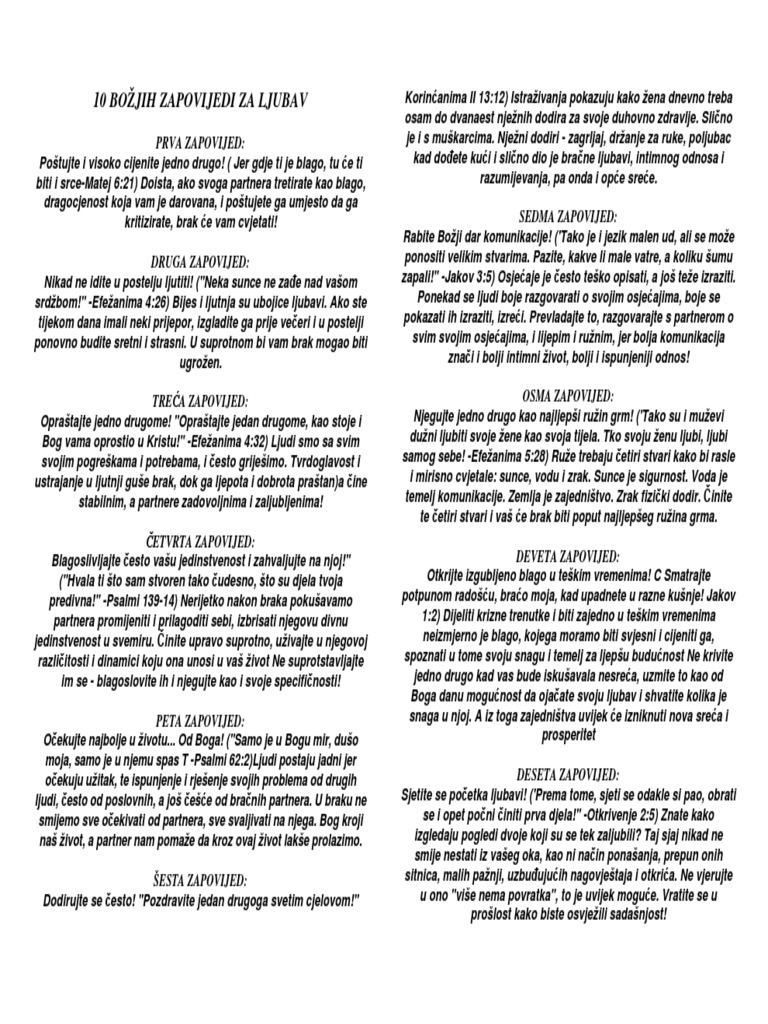 Ne poželi nikakve tuđe stvari! Ne izusti imena gospodina boga svoga uzalud. Ne poželi tuđeg ženidbenog druga! Recimo mu sve što želimo, sve naše tajne, misli i želje.