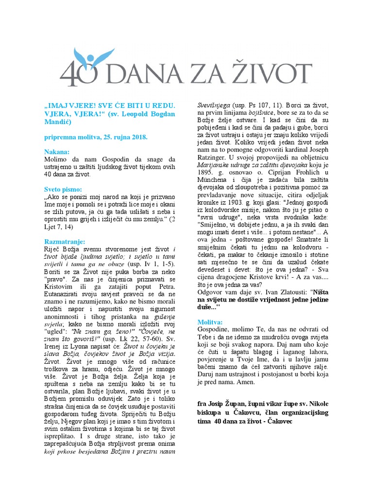 40 Dana Molitve Za Zivot Hrt Radio Split from radio.hrt.hr Tijekom ovih 40 dana molitve za život, dopusti da mir ispuni moju dušu, osobito kada moram pretrpjeti progonstva. Misi, izmolimo krunicu, koja se u međugorju svakodnevno moli svih ovih 40 neki će postiti deset, petnaest, dvadeset pa i svih četrdeset dana. Ona povezuje čovjeka i gospodina kao pupčanu vrpcu djeteta s majkom.