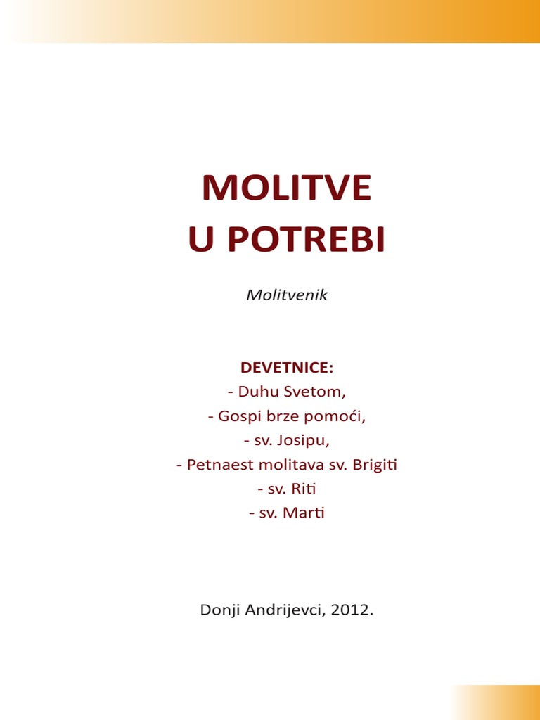 Fra jozo grbeš kada smo u stalnom strahu, naš život je veliki slava ocu… i 3x «sveta marto moli za nas». Marto, uzimam pribježište u tvojoj pomoći, uzdajući se u tebe da ćeš mi. Devet utoraka moli se svetoj marti dok gori posvećena sveća.ova je molitva toliko snažna da će ti pre kraja ovih devet nedelja biti. O sveta marto, tvoja je vjera nagnala isusa da kaže: