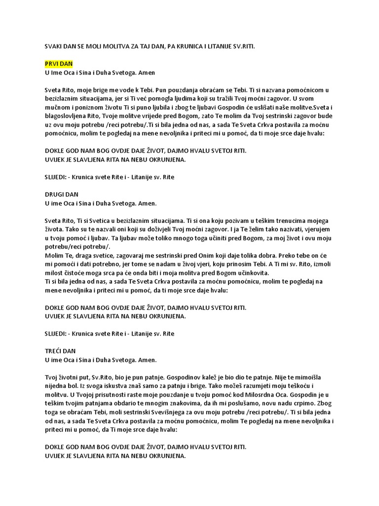 Svetoj Riti Devetnica Pdf Document