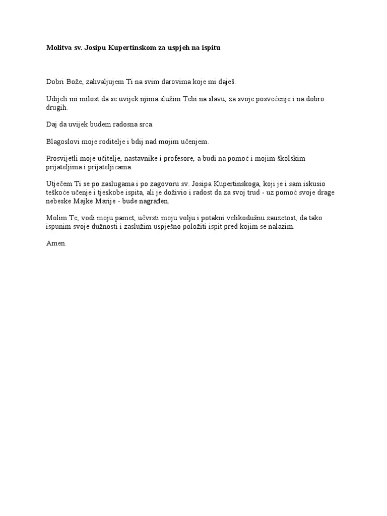 Molitva Za Uspjeh Na Ispitu Pdf