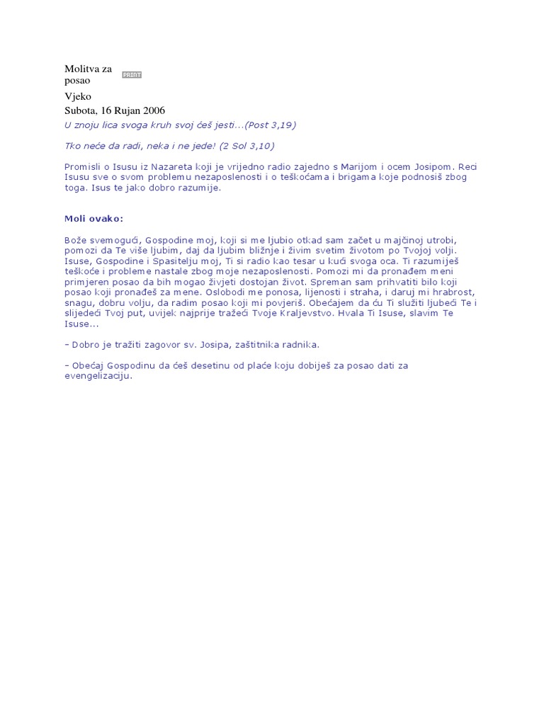 Molitva za posao. Grijesis molitva za posao nije zloupotrebljavanje portala vec ono cemu portal i sluzi. Dragi moj AlfaOmega ne uznemiruj se iskrena srca idi kroz zivot i nece ti nicega nedostajati. Vrlo vam je važan odnos sa partnerom tako da bi trebalo da se potrudite jedno oko.