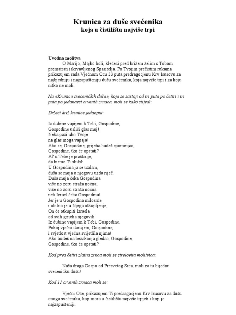 Krunica Za Duse Svecenika Koja U Cistilistu Najvise Trpi Pdf